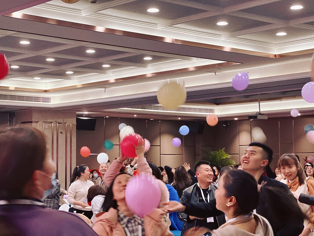 在會議結(jié)束后,主持人讓花友們把工作人員提前準(zhǔn)備好的氣球吹起來,再與旁邊的同伴一起相擁把氣球壓癟。寓意把游學(xué)所吸收的能量和知識,共同分享釋放出來!此次游學(xué)正是在這樣輕松愉悅的氛圍中畫上了圓滿的句號!